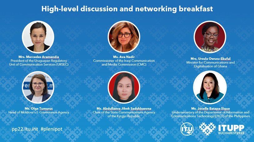 September 30, 2022 began with a women’s high-level networking breakfast jointly organized by host country Romania, ITU, and Australia, which provided financial support and training for more than 100 women to take on leadership roles at the Plenipotentiary Conference (PP-22) of the UN specialized agency for information and communication technologies (ICTs). (ITU)